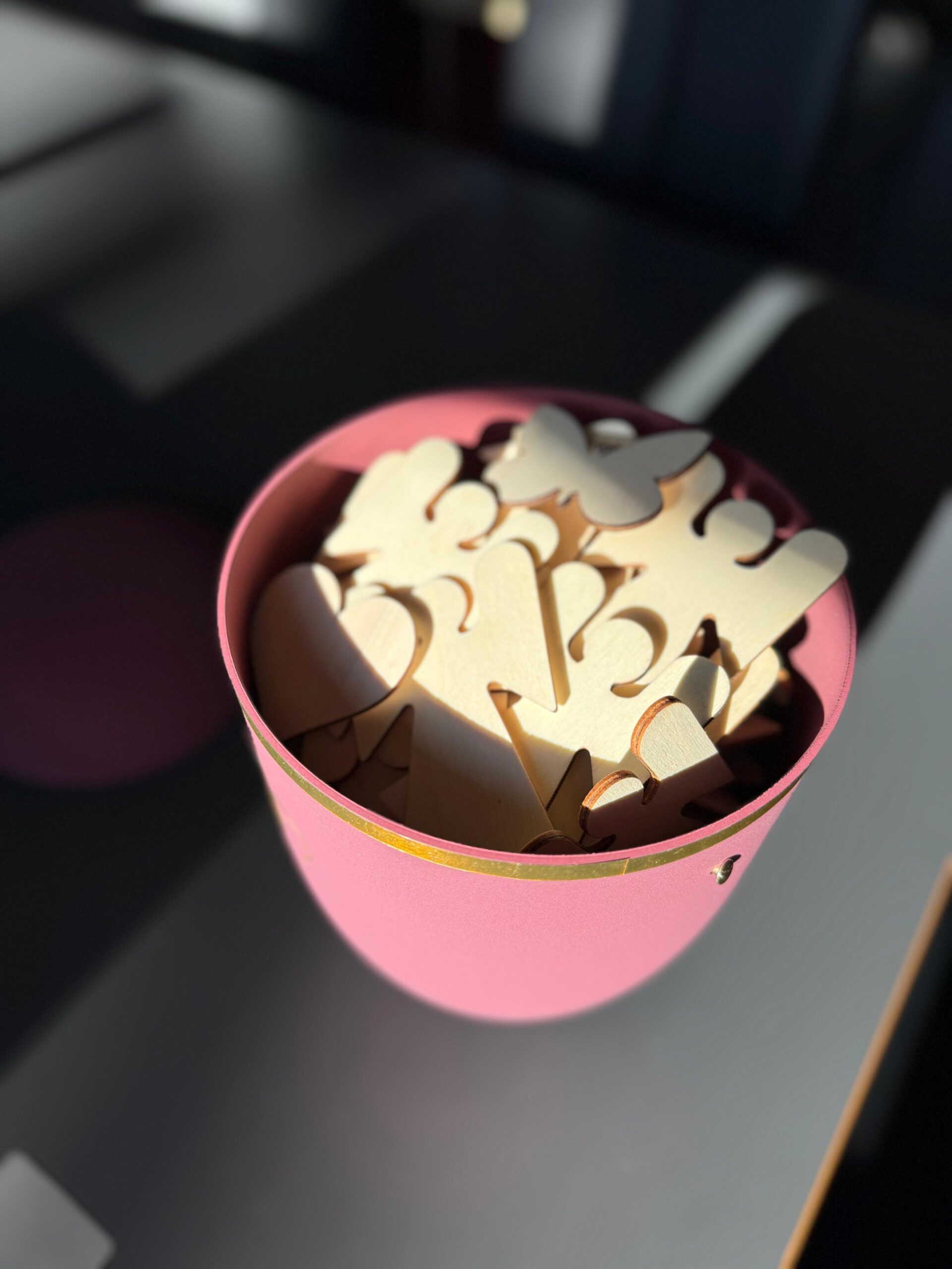 Diese individuell gestaltbaren Holzfiguren ermöglichen es Angehörigen, beim Abschied persönliche Botschaften oder Bemalungen zu hinterlassen.